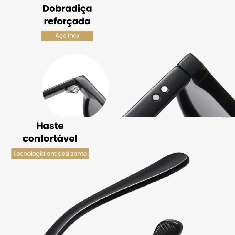 Adicione um toque de estilo clássico e sofisticação ao seu dia com os óculos Maia. Inspirado no design vintage retrô, este modelo unissex é perfeito para quem valoriza autenticidade e elegância atemporais. Com lentes polarizadas, garante máxima proteção contra os raios solares e uma visão clara e confortável, mesmo nos dias mais ensolarados. Ideal para completar qualquer look, seja casual ou refinado